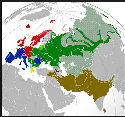 이 인도와 유럽에 걸쳐 분포된 ( 식민지시대후부터는 아메리카 대륙과 오스트레일리아 및 몇몇 아시아지역까지 퍼진) 언어들은 인도-유럽어계라는 더 큰 분류에 들어가있어.