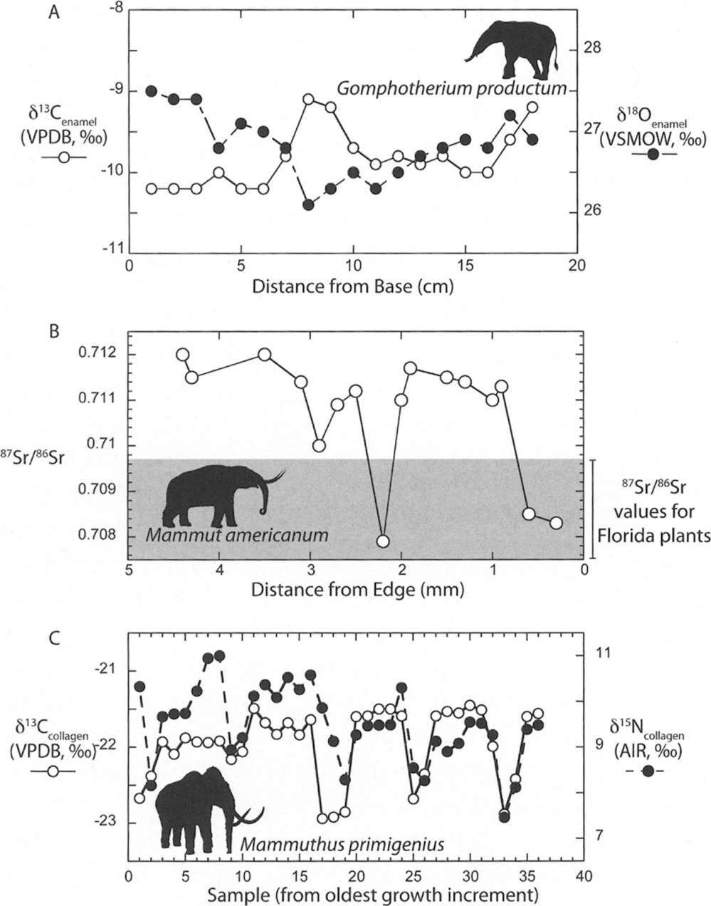 여기서 먹은 식물의 환경과 종류에 따라 채취되는 동위원소의 기호는 달라지며, 이 정보는 해당 초식동물의 뼈에서 검출할 수 있지