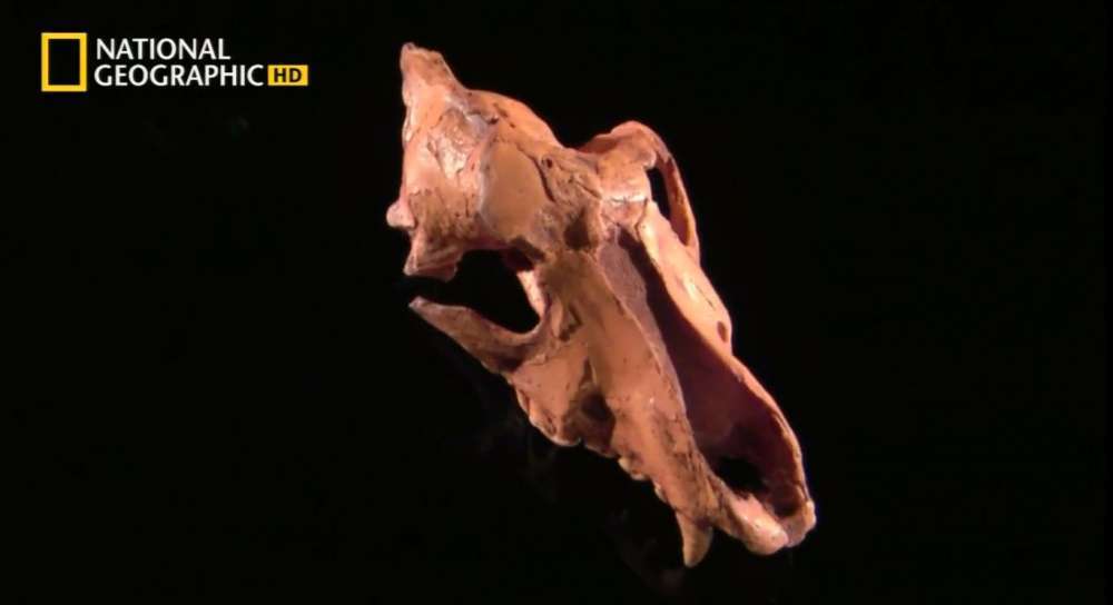 부러진 이를 가진 다이어울프의 머리 뼈 연대를 조사해 본 결과